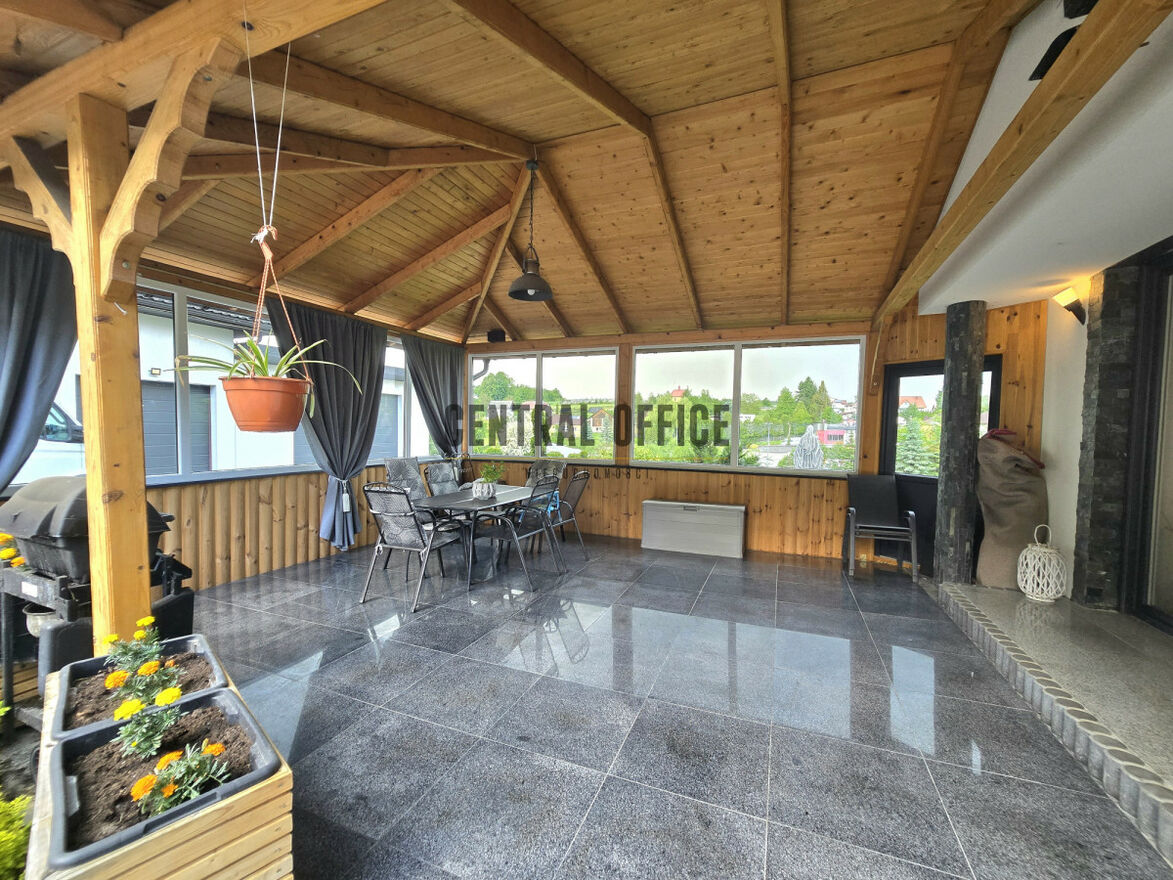 *** Taras z wyjścia z salonu- 48m2, zadaszony, oszklony, oświetlony, z granitową podłogą